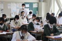 7限目の「総合的な学習の時間」で全3年生が、国公立の文系・理系。私立の文系・理系。看護そして難関大学の6コースに分かれて大学受験について理解を深めました。