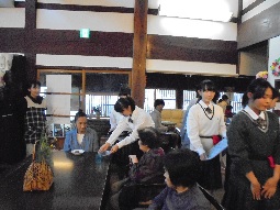 1月21日(日)に加賀市大聖寺熊坂町蘇梁館で『親子参加他文化交流会』がありました。「加賀国際交流会たぶんかネット加賀」が企画し、市や県と共催して開いたもので、本校茶道部はお茶会を担当しました。外国の方を含めて約50名のお客様にお茶とお菓子を楽しんでいただきました。