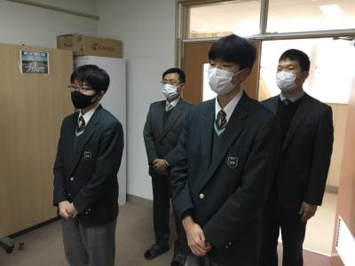 また、これに先立って、校長室で激励費の授与式を行いました。