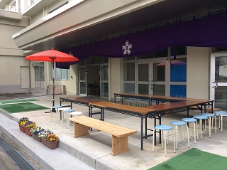 4月10日(月)入学式後、茶道部は昨年に引き続き新入生歓迎茶会を生徒玄関前で催しました。当日は80名を超える大勢の新入生と保護者の方々が来てくださり、部員一同、こころづくしのお茶とお菓子でおもてなし致しました。野点傘を立て、花は延齢草、りゅうきん花、碇草、短冊は鈴村前校長先生筆の『柳緑花紅』を飾りました。裏千家の正教授である梶宗雅先生のご指導のもと、数日前から準備に励んだ甲斐がありました。来て下さったみな様、どうも有り難うございました。