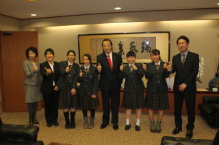 全国選抜大会に出場する弓道部が、加賀市長を表敬訪問しました。宮元市長の激励をうけて、大会での健闘を誓ってきました。PTA会長大家さんも駆けつけて下さいました。