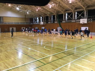 合同トレーニングが始まりました。先生の話を真剣に聞き、男女に別れてトレーニングに励んでいました。