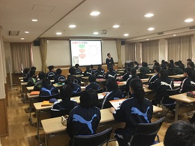 本校は1月から2月にかけて、運動部全体で合同トレーニングを行います。トレーニングに先駆けて、トレーニングの効率・効果をより高めるために、北陸体力科学研究所の三井 外喜和先生を講師としてお招きし、講話をして頂きました。