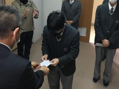 オンラインからいろんなものを吸収してください。」と激励の言葉と報奨金のの授与がありました。