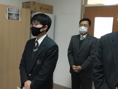 大会に参加する二人に対し、激励費の授与に続き、土山校長からは「それぞれが今まで味わったことのない雰囲気で試合をすることになると思います。いい経験になるので、思いっきり活躍してきてください。」と激励の言葉を送りました。