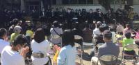 その後、生徒会長 墨谷君の挨拶に続いて、学校長から激励の言葉と「カモーン」エールが送られました。