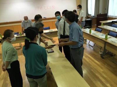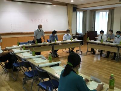 コロナ禍の影響で今年度も参加者は、、新旧本部役員、各委員の正副委員長、各支部長の方々のみに絞って縮小の形で行われました。
