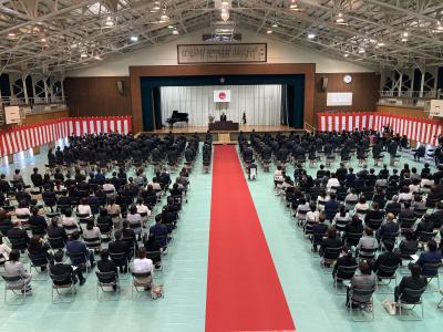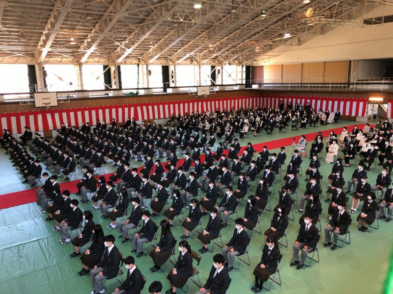 今年度は162名の新入生を迎え、代表して東川陽向さんが「先生方のご教示を守り、自主自律の建学の精神に則り、勉学修養に努める」と宣誓しました。在校生を代表し生徒会長の松田優希君が新入生に歓迎の言葉を贈りました。コロナ禍で入場者数には制限のある式でしたが、多くの保護者の皆さまに式に参列していただきました。