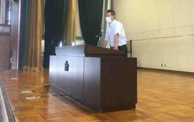 当初、体育館で行う予定だった壮行会ですが、感染拡大を受けて、急遽、生徒会役員の進行による放送(オンライン)による開催となりました。