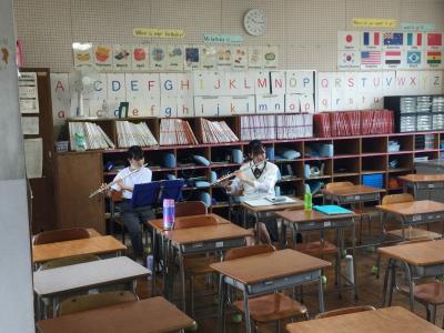 以前から錦城小学校のブラスのみなさんと練習する機会はありましたが、今回は2日に分けて合同練習をさせていただきました。小学生との練習で苦戦することもありましたが、学ぶことも多く、とても良い機会になりました。十万石まつりで一緒に演奏するのを楽しみにしています♬