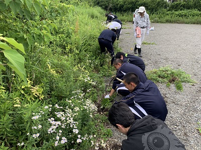 山林ボランティアは、聖高エコプロジェクトの一環として行われる年間2回の恒例行事です。今年は山代へ行き大聖寺高校SEP委員の生徒達と環境美化活動として、草刈りを行いました。