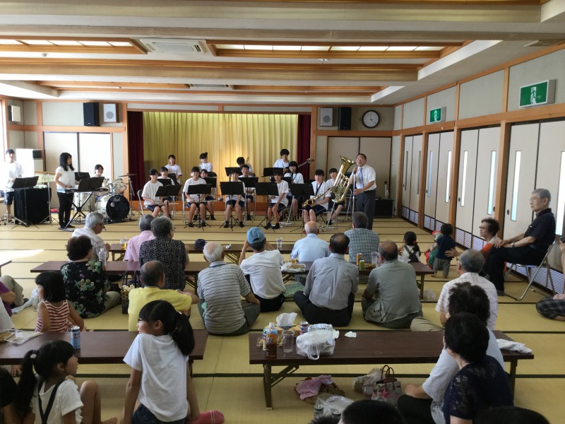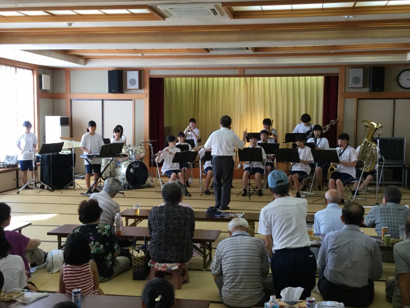 吹奏楽部が、耳聞山町の夏祭りに招かれ、演奏を披露させていただきました。