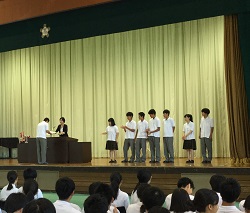弓道部、テニス部、ソフトテニス部、吹奏楽部が、表彰されました。