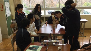 1年生の交流委員と生徒会役員が、錦城特別支援学校を訪問し、高等部の生徒とゲームなどで交流するものです。最初は、本校生徒が準備したクイズ大会、輪投げを行い、その後グループに分かれていろいろなゲームなどで交流しました。最初は緊張している様子も見られましたが、すぐに打ち解けて、楽しいひとときを過ごすことができました。