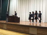 卒業記念品贈呈、校歌と蛍の光をの斉唱