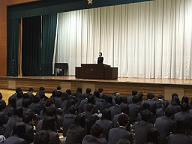 続いて終業式が行われ、学校長は、今年を振り返り、自分のあり方を見直しながら前に進むことの大切さを、『昨日の自分を超えていけ!』という言葉とともに話されました。