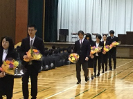 離任される先生方一人一人にお話をしていただき、花束を贈呈しました。
