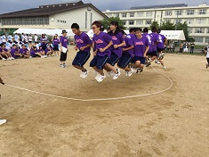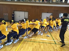 雷と雨の影響で、急遽、会場を体育館に移し、競技メニューも変更しましたが、生徒たちはいい笑顔で、力一杯、応援合戦・アトラクション(集団演舞)・綱引きなどを競い合いました。
