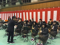 クラス発表の後、大聖寺高校について生活指導課の先生による説明が行われた後、吹奏楽部による新入生歓迎の演奏が行われました。