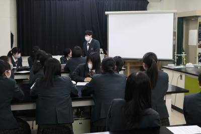 全国の大学へ進学した本校のOB・OG(大学3年生)とオンラインで結んで、大学での学びや大学生活について話を聞いたり、質問をしたりして、「大学生の今」を知ることができました。生徒の感想も「分かりやすくって実感が沸いた。」と好評でした。協力していただいた先輩方、ありがとうございました。こんなところも伝統校の強みかも知れません。