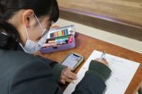 受講した生徒からは「中学生の頃からスマートホンを持っていたが、SNSなどの危険性を改めて知ることができて良かった。」、「高校生になってスマートホンを使うようになったが、軽はずみに利用するのではなく、よく考えて利用しようと思った。」という感想も聞かれ、生徒の理解が深まる良い機会になったようです。