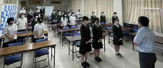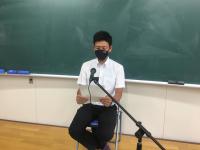当初、体育館で行う予定だった壮行会ですが、感染拡大を受けて、急遽、生徒会役員の進行による放送(オンライン)による開催となりました。