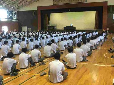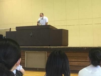 引き続き行われた2学期始業式では、土山校長が北島康介氏やイチロー氏の言葉を引用し、生徒にエールを送りました。