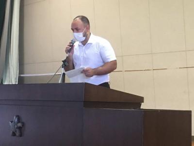 2学期始業式の前に、新しく本校に着任されたALTのマイケル先生の新任式が行われました。