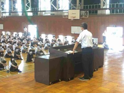 今日は、約1年半ぶりに全校集会(新任式と始業式)が行われました。