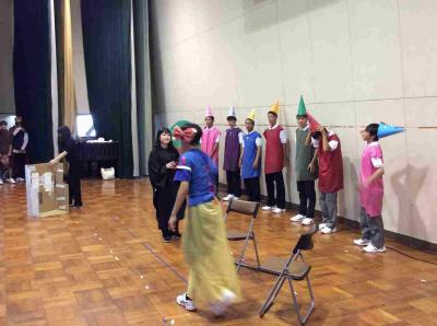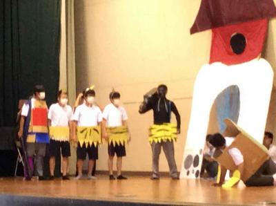 その後、舞台では「1年生の仮装劇」が行われ、短期間の練習ながら、コミカルな演技や即席で作ったとは思えない衣装や大道具などが観客の目を引いていました。