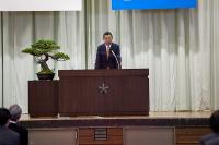 記念講演では、本校卒業生である日本バドミントン協会専務理事の銭谷欽治氏から、「自分の人生」と題してご講演を頂きました。ご自身の様々な体験をふまえた、貴重な提言を頂戴致しました。