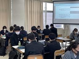 今日は、1年生がこれまでに様々な視点や観点から設定したテーマをもとに、行ってきた探究活動の中間発表会が行われました。発表は、人口減少問題やコロナ渦での飲食店、子育て支援や観光旅館業の魅力化など、多岐にわたるものとなりました。