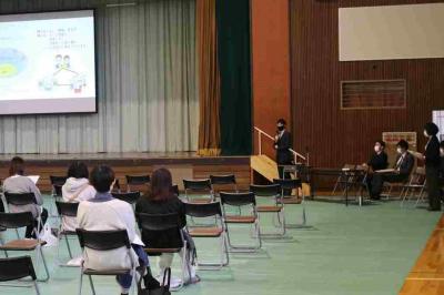 全体会では在校生へのインタビューも交えながら大聖寺高校の特色を紹介しました。