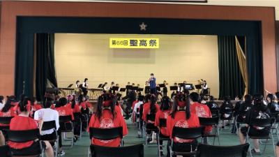 以前より共同で練習を行ってきた錦城小学校吹奏楽部との共同参加ができました。