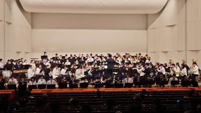 中学校の吹奏楽部、また、小松大谷高校をはじめとした他の高校の吹奏楽部や福井工業大学吹奏楽部の方々と演奏しました。普段体験することのない大人数での演奏は学ぶことも多く、今後の部活動への良い刺激となりました。貴重な体験ができたことに感謝したいです。