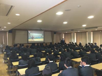 ・4月17日の部登録に向けて、各部活動が撮影し、放送部が編集した動画を見ました。それぞれの部活動が作った動画に
