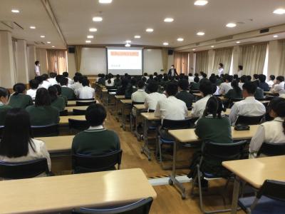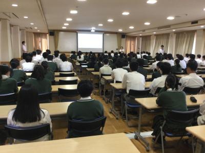 3学年の担任が、学習の際のルール、体力・根気・気力、支えてくれる人の思い、今しなければいけないこと、放課後補習の活用の話をしました。この瞬間から真の受験生になっていくことを期待します。
