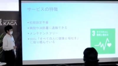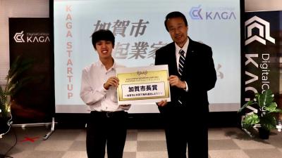 10月から5回にわたって実施され、最終日となる同日にピッチ(投資家に向けてのプレゼン)が行われました。加賀市の未来が見えるとの評価をいただき、見事,加賀市長賞に選出されました。