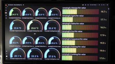 生徒たちは、センサ装置(計測とデータ送信)、表示装置(データ受信、解析とディスプレイ)、WiFi環境の構築をしました。体育館、工場や教室ごとに異なる暑さ指数を見守ることができ、熱中症予防に役立つことでしょう。