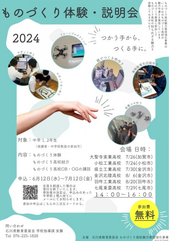 いしかわのものづくり高校の魅力や凄さを発信する取り組みで、参加費は無料です。