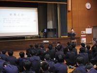 大聖寺警察署の方々をお迎えして、「少年の非行防止~自分の未来のために考えよう~」というタイトルで行われました。