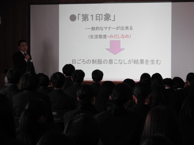 12月18日(木)1限目~4限目にデュアルシステム・インターンシップの発表会が行われました。企業実習を通して学んだこと、実習中に気付いたことなどを上手にスライドにまとめ、企業担当者の方や1・2年生を前に堂々とした発表でした。