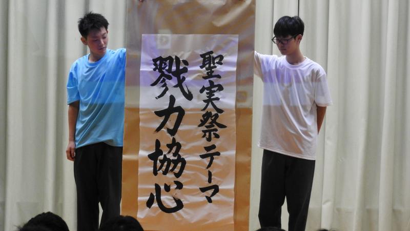なお、本校の保護者の方には、学校配信メールでお送りしましたパスワードを入力すると、文化祭でステージ発表した各クラスの動画や劇、聖実祭の様子を動画で見られます。(準備中)是非、ご覧ください。