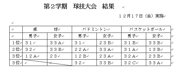 各クラスが協力し、クラスの特徴を感じる良い発表でした。結果は以下の通りです。