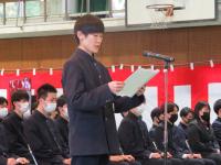 新入生代表が「新しい仲間と協力し合いながら、学業と部活動に専念したい。」