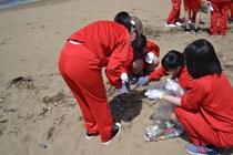 4月28日(木)に遠足を行いました。1年生は片野海岸まで歩いて行き、海岸清掃を行ってきました。