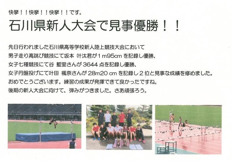 本校生徒が見事に、全国大会出場を決めました。なお、全国大会には4年連続(12回目の)出場になります。また、この選手は1年生の時から3年連続の出場となり石川県初の快挙を成し遂げました。さらに技術を磨いていってもらいたいです。
