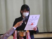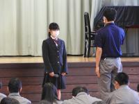 校長先生より、新任の2名の先生の紹介とWithコロナについての話があり、その後、後期生徒会役員紹介と表彰伝達式、全国大会出場者(全国高等学校陸上競技大会2020 高校女子3000mに北村 遥さんが出場)の激励会がありました。