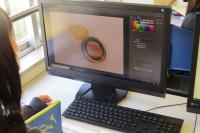10月14日(水)の2時間と21日(水)の2時間、3年生情報ビジネス科生徒を対象に、商業デザイン実習を行いました。プロのデザイナーの方にお越しいただき、画像などの編集ソフトAdobe PhotoshopとIllustratorを使って、ポスターを作成しました。実習では、写真データの色合いの調整や切り抜きなどをPhotoshopで行い、そのデータをIllustratorの中に取り込み、デザインの編集作業を行いました。一通りベースになったものができると、それにオリジナルを加え、様々なヴァージョンのポスターが完成しました。なお、ポスターは今年の大実新商品「〇平(まるへい)アイス」が題材です。