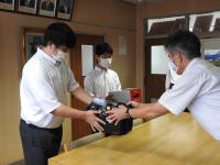 7月6日(火)写真部の今までの成績を称え、更なる活躍を期待して「一眼レフカメラ」を購入し、校長先生より同部へ贈呈されました。受け取った21H澤田 憲伸さんは今年度、石川県高等学校総合文化祭美術展写真部門で優良賞に輝きました。写真部は近年、数々の成績を残しています。記念品として贈呈された「一眼レフカメラ」を活用し、部の更なる活性化につなげてほしいと思います。